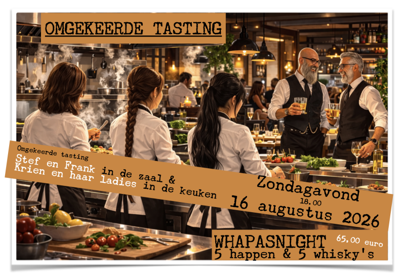 We organiseren regelmatig proeverijen en tastings . Vaak WHAPASNIGHTS, soms whiskydegustatiemenu's .